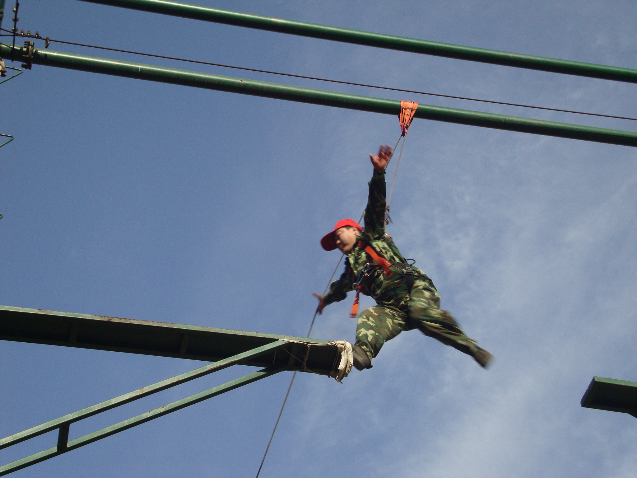 高空斷橋:在距離地面8米的高空搭起了一座獨(dú)木橋,而這個(gè)橋的中間卻是斷開的,間距1.2米-1.4米,要求每個(gè)隊(duì)員爬上8米的高空后,在空中躍起,從橋的這側(cè)跳到另一側(cè), 雖然身上掛滿了安全保護(hù)措施,但在高空跳躍,每個(gè)人都產(chǎn)生了或多或少的恐懼感,從爬上去站到高空已是一次極大的考驗(yàn),從高空躍到對(duì)面更是一次心理的挑戰(zhàn)。有的同伴從滿臉通紅到面色蒼白,有的戰(zhàn)戰(zhàn)兢兢不敢站立,有的站了許久不敢躍起,還有的上去之后直叫:“我有恐高癥!是真的……”在隊(duì)長(zhǎng)的帶領(lǐng)下,我們?yōu)槊恳粋(gè)參訓(xùn)的隊(duì)員“加油”,目送他們一個(gè)一個(gè)爬上搖搖晃晃的高桿,然后不斷呼喊他們的名字,每完成一個(gè)步驟都熱烈地鼓掌高呼。結(jié)果,全隊(duì)20多名隊(duì)員都順利完成了這項(xiàng)訓(xùn)練,zui后大家用熱烈的掌聲慶賀自己的成功和勝利。 此項(xiàng)目心得體會(huì):表面看起來很難的事,其實(shí)并沒有想象中那么可怕。在工作、生活中,遇到困難并不可怕,怕的是失去解決困難的勇氣和信心!心理的障礙是zui難逾越的,我們?nèi)绻蔀閺?qiáng)者,首先就必須挑戰(zhàn)自己的恐懼感,當(dāng)我們豁出去一搏,勇敢地跨出一小步,也許就能抓住屬于自己的機(jī)會(huì),實(shí)現(xiàn)人生一大步的跨越。