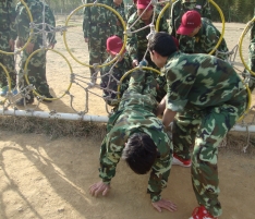 坎坷人生路:要求是兩人一組,一人扮演啞人,另一人把眼睛蒙住,扮演盲人。兩人互幫互助走完一段坎坷崎嶇的山路。由下樓、上坡、水泥路、荊棘叢、急轉(zhuǎn)彎、翻溝、過草地等障礙組成。整個(gè)過程中所有隊(duì)員都要嚴(yán)格要求自己、絕對(duì)服從教練、謹(jǐn)遵游戲規(guī)則,無論遇到什么困難都堅(jiān)守“全力以赴”的承諾。 活動(dòng)開始,一個(gè)個(gè)“盲人”被“啞人”引領(lǐng)著,通過各種障礙物,“啞人”們盡職盡責(zé)的拉起“盲人”的手,有時(shí)挽起胳膊,兩只手環(huán)繞著對(duì)方,有時(shí)背起對(duì)方,有時(shí)抬起對(duì)方的腳,甚至自己在地道前面爬一段,還要回頭盡心的保護(hù)對(duì)方,走過坎坷之路。當(dāng)拓展進(jìn)入了尾聲,隊(duì)員們用愛把搭建人橋的幾位成員圍成圈包圍起來的時(shí)候,大家久久不愿松開懷抱,所有情感都化為淚水,甚至還有的同伴從zui初的默默流淚到zui后的失聲痛哭!這盡管只是一場(chǎng)游戲,但它像是人生的縮影,讓每個(gè)人都觸動(dòng)了心靈! 此項(xiàng)目心得體會(huì):在我們生活中,無時(shí)無刻也未曾離開過他人的幫助,父母賦予我們?nèi),同事給予理解和幫助,同學(xué)們真誠的友愛和攙扶,我們其實(shí)生活在一個(gè)充滿愛的大家庭中,學(xué)會(huì)堅(jiān)強(qiáng)、學(xué)會(huì)合作、懂得感恩。雖然這個(gè)項(xiàng)目在全體隊(duì)員的“謝謝”聲中結(jié)束了,但心存一份真誠和善意,學(xué)會(huì)感恩給同學(xué)們帶來的是終身的財(cái)富。